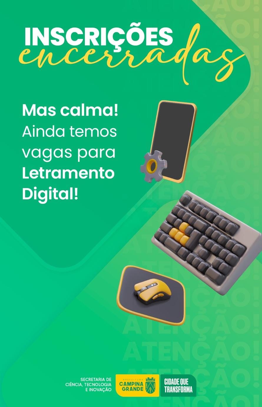 As inscrições para o curso de Letramento Digital podem ser realizadas através do link: https://forms.gle/NaFdFKgX8XZx7oH28