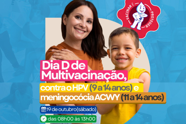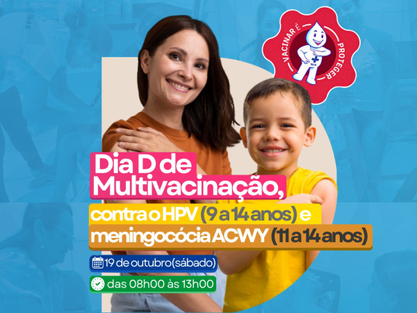 A Prefeitura Municipal de Cajazeiras e a Secretaria de Saúde têm um recado importante: no sábado, dia 19, haverá mais um Dia D de Multivacinação, focando especialmente nas vacinas contra o HPV e as Meningites. Essas vacinas são essenciais para proteger os jovens de doenças graves e garantir um futuro mais saudável!