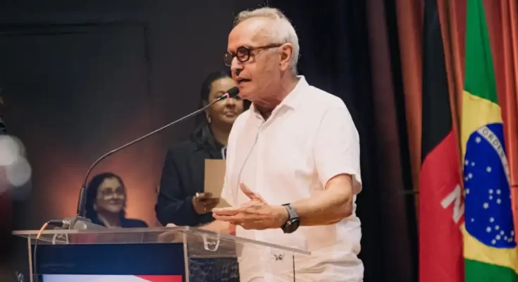 Ao lado do governador João Azevêdo, o prefeito Cícero Lucena e o vice-prefeito Leo Bezerra participaram, na manhã desta segunda-feira (13), do lançamento do programa ‘Paraíba 2025-2026’, que consiste em novas obras e ações que contemplarão todas as regiões do Estado com um investimento de mais de R$ 11,5 bilhões. Durante a solenidade, que aconteceu no Teatro Paulo Pontes, Cícero celebrou a parceria com o Governo, que tem levado várias ações estruturantes para a Prefeitura de João Pessoa.