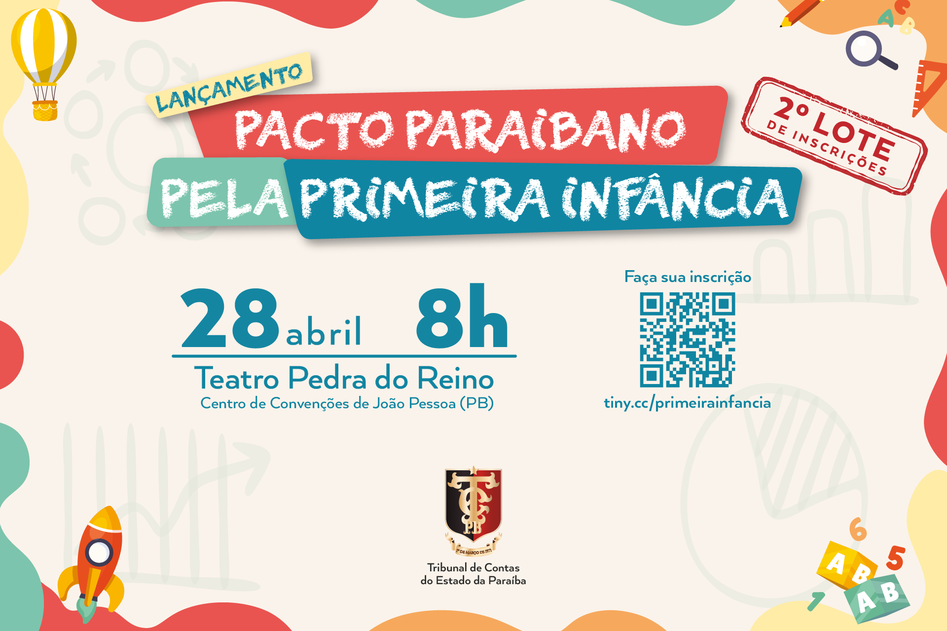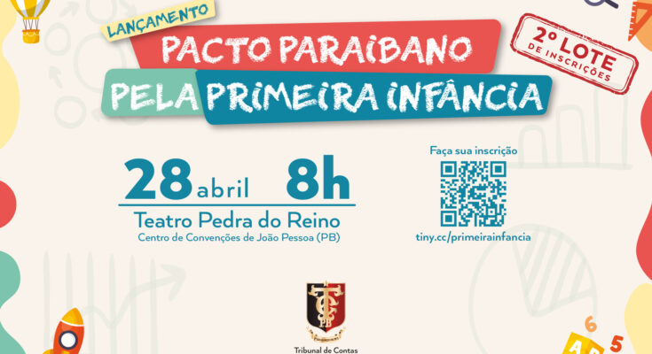 Nesta quinta-feira (10), o Tribunal de Contas da Paraíba (TCE-PB) deu início ao segundo lote de inscrições para o lançamento do Pacto Paraibano pela Primeira Infância. A iniciativa, que será realizada no dia 28 de abril no Teatro Pedra do Reino, no Centro de Convenções de João Pessoa, visa promover o desenvolvimento integral de crianças de 0 a 6 anos no estado.
