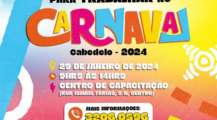 A Prefeitura Municipal de Cabedelo (PMC), por meio da Secretaria de Indústria, Comércio e Portos (SEICOP), inicia, na segunda-feira (29), o cadastro de ambulantes interessados em trabalhar durante as festividade de Carnaval na cidade, que acontecem entre os dias 04 e 13 de fevereiro.