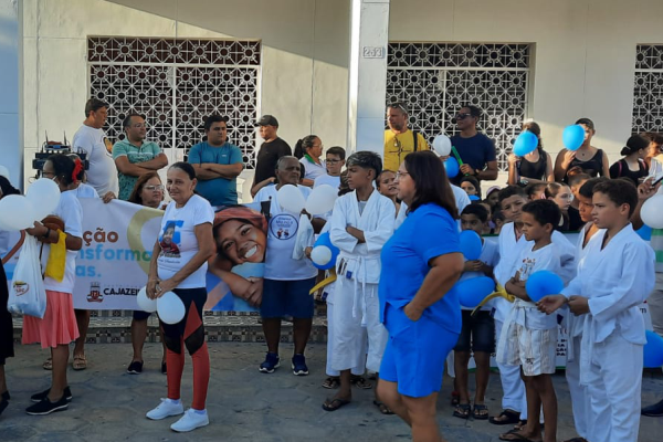 A solenidade de lançamento teve início com uma caminhada saindo da Praça das Oiticicas até o Paço Municipal com a participação de crianças e idosos atendidos pelo programa.