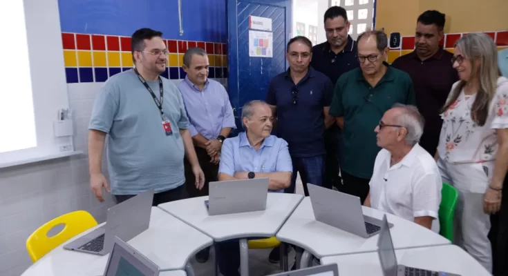 A comitiva vinda de Teresina iniciou o dia visitando o CMEI José Carvalho e a Escola Municipal Anita Trigueiro do Valle, unidades de ensino localizadas no bairro do Altiplano. O prefeito Cícero Lucena apresentou ao colega gestor as inovações tecnológicas que estão sendo implementadas na Rede Municipal de Ensino, como a Sala Google, a Sala Maker, Chromebooks, tablets e mesas interativas.