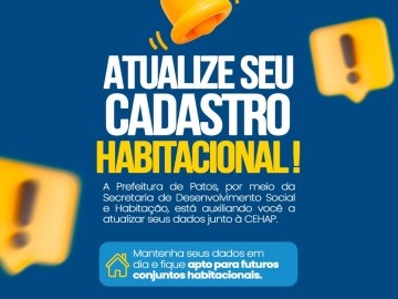 O cadastro não garante a contemplação, mas é fundamental para identificar famílias que se encaixam nos critérios dos programas habitacionais da CEHAP e de futuras iniciativas da Prefeitura de Patos.
