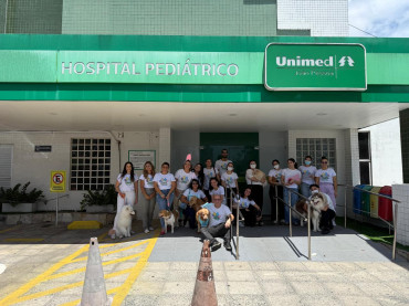 As crianças do Hospital Pediátrico Unimed receberam uma visita especial que promoveu momentos de alegria e brincadeiras, através do projeto Pet Terapia Unimed JP. Um grupo de voluntários, formado por profissionais de saúde e de outras áreas, levaram seus cães para interagir com os pequenos pacientes da unidade.