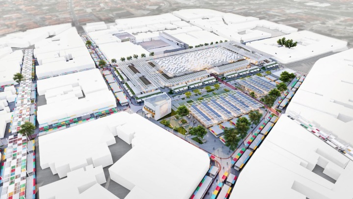 A área total da primeira etapa da obra equivale a quase 3 mil m², sendo cerca de 648 m² de área coberta, composta por estrutura metálica em grelha, que proporciona sombreamento, conforto ambiental e reforça a atmosfera tradicional da feira, em uma linguagem contemporânea. Atualmente, o local é ocupado por edifícios em ruínas e, após a requalificação, terá usos distintos voltados à convivência, cultura e gastronomia.