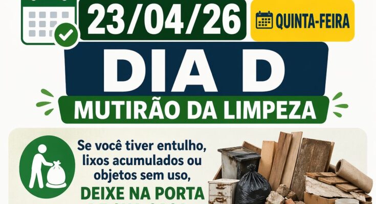 A gestão municipal ressalta que a participação da população é indispensável para o sucesso da ação. A proposta é que, com o engajamento de todos, seja possível construir um ambiente mais limpo, saudável e organizado para toda a população.